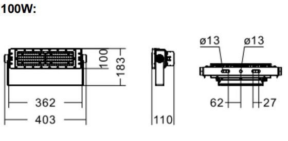 IP waterdichtYWFL100W LED-verlichting Geschikt voor luchthavens, grote gebouwen, pleinen en landschappen met zwart en zilver.